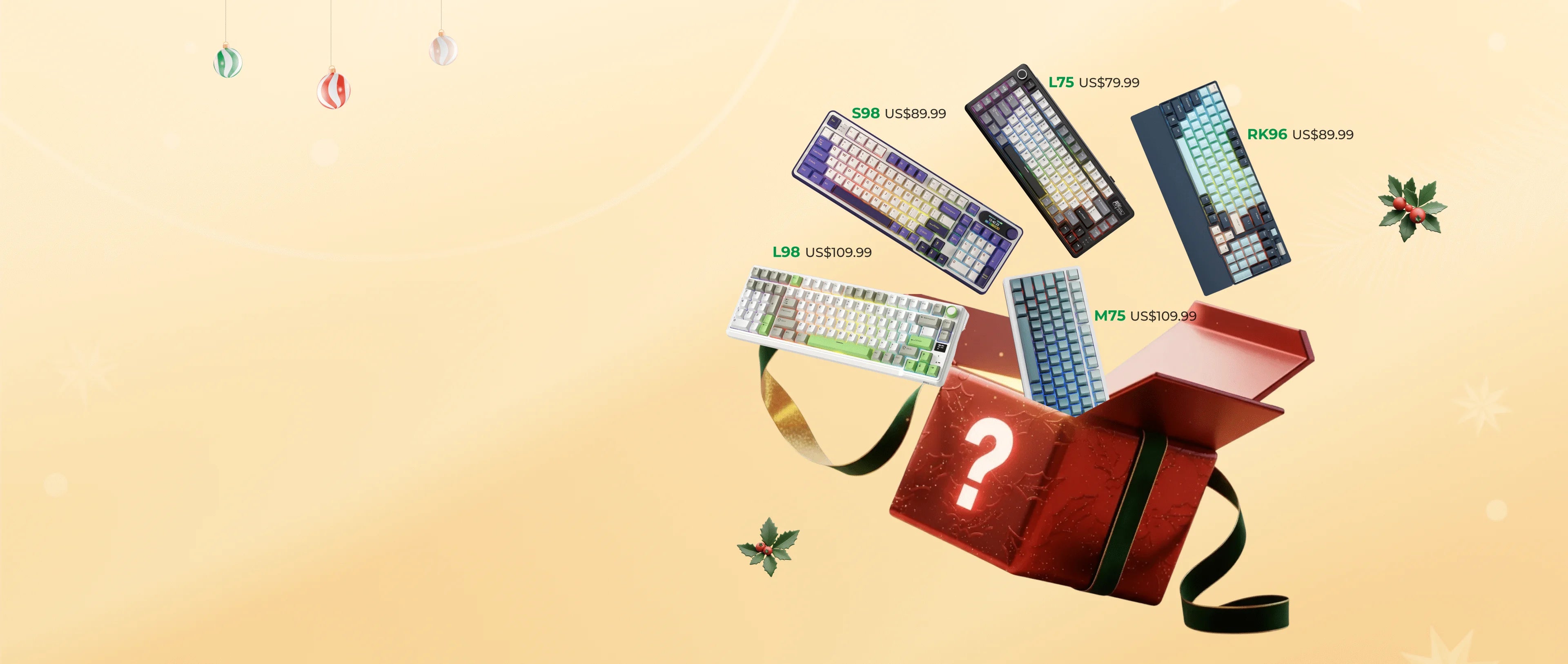 Unwrap the holiday magic! Each box includes 1 of 6 surprise RK keyboards, valued up to $109.99 USD. Which keyboard will you get under your tree? ✨🎄