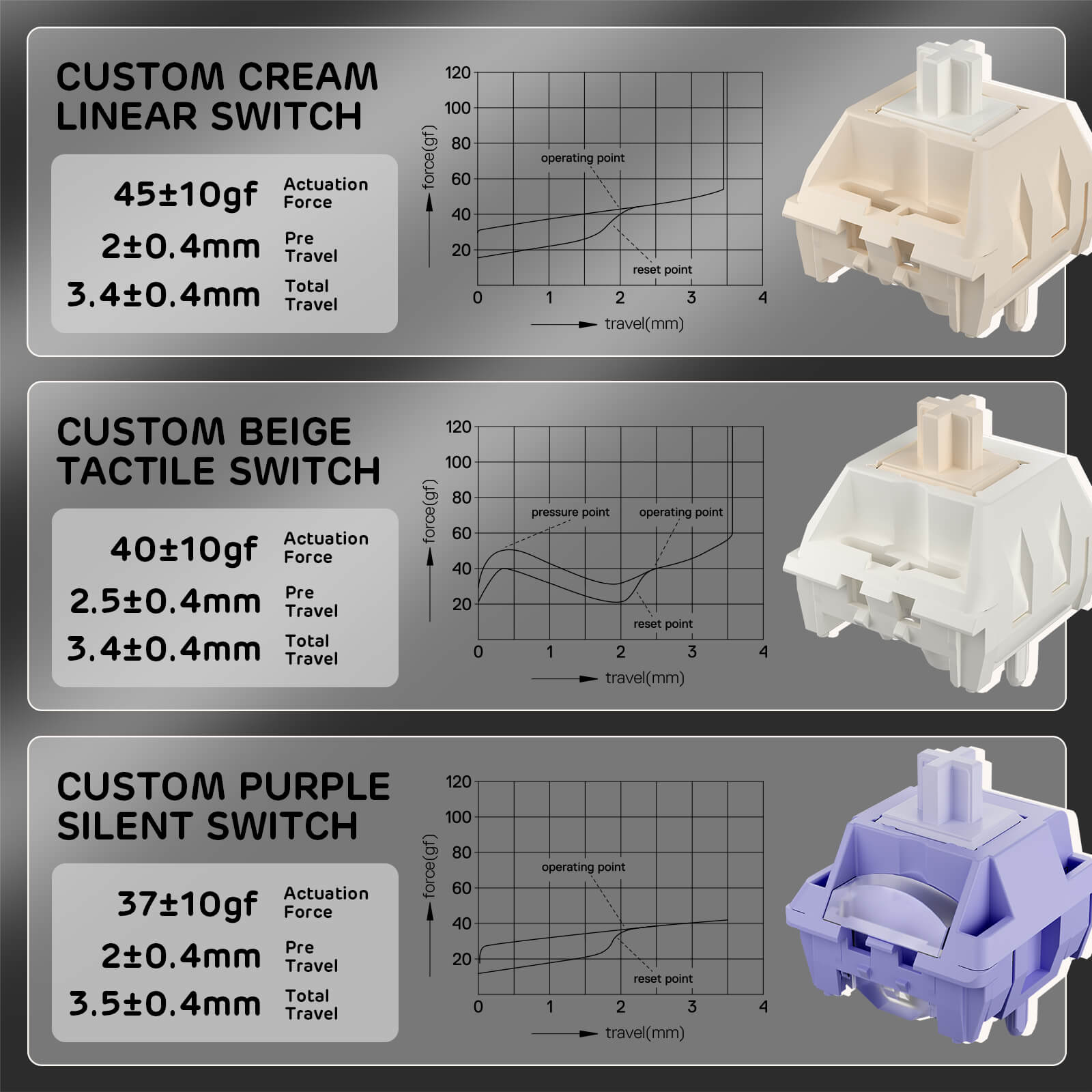 - Pre-lubed Custom Switches