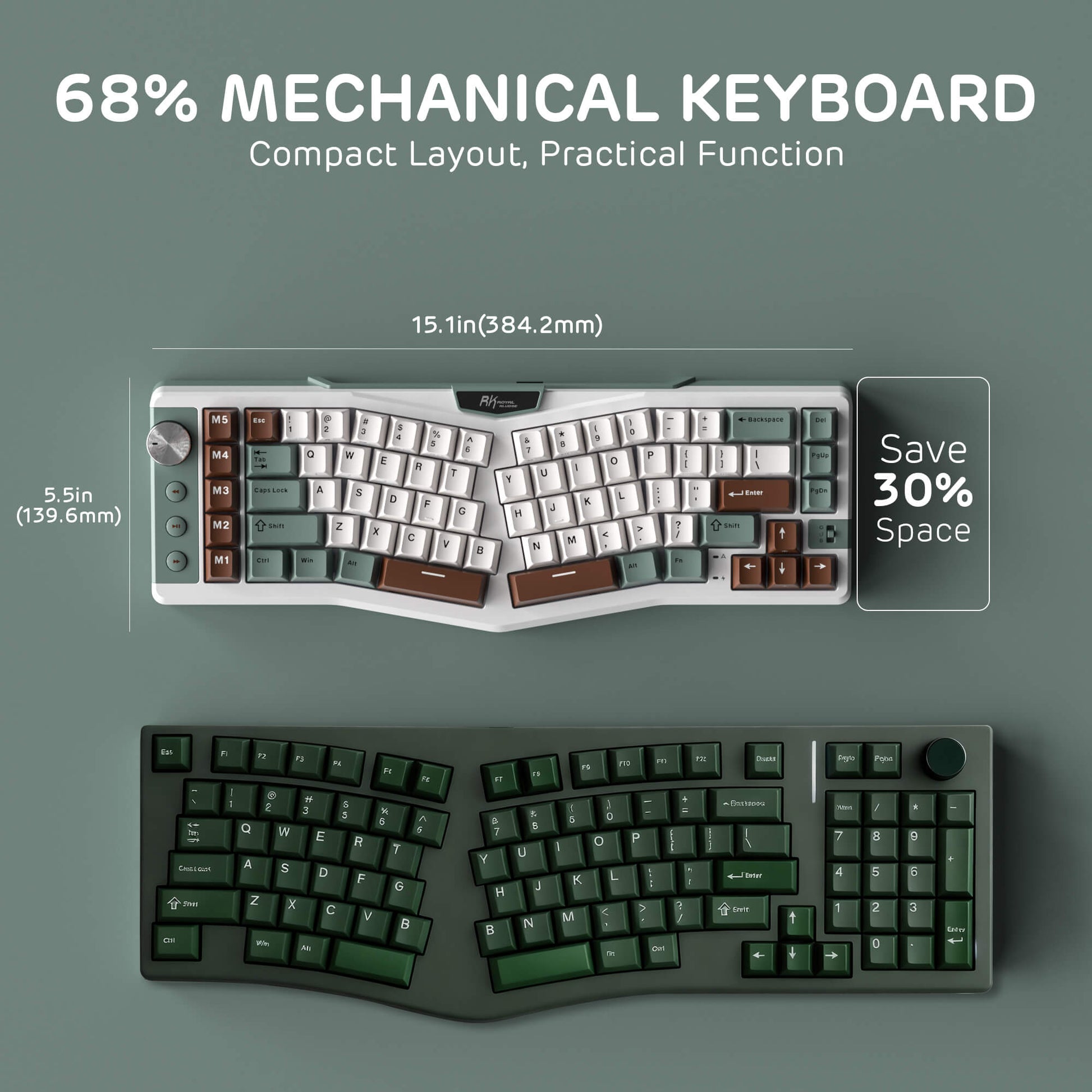 A72 68% Ergonomic Alice Layout Mechanical Keyboard