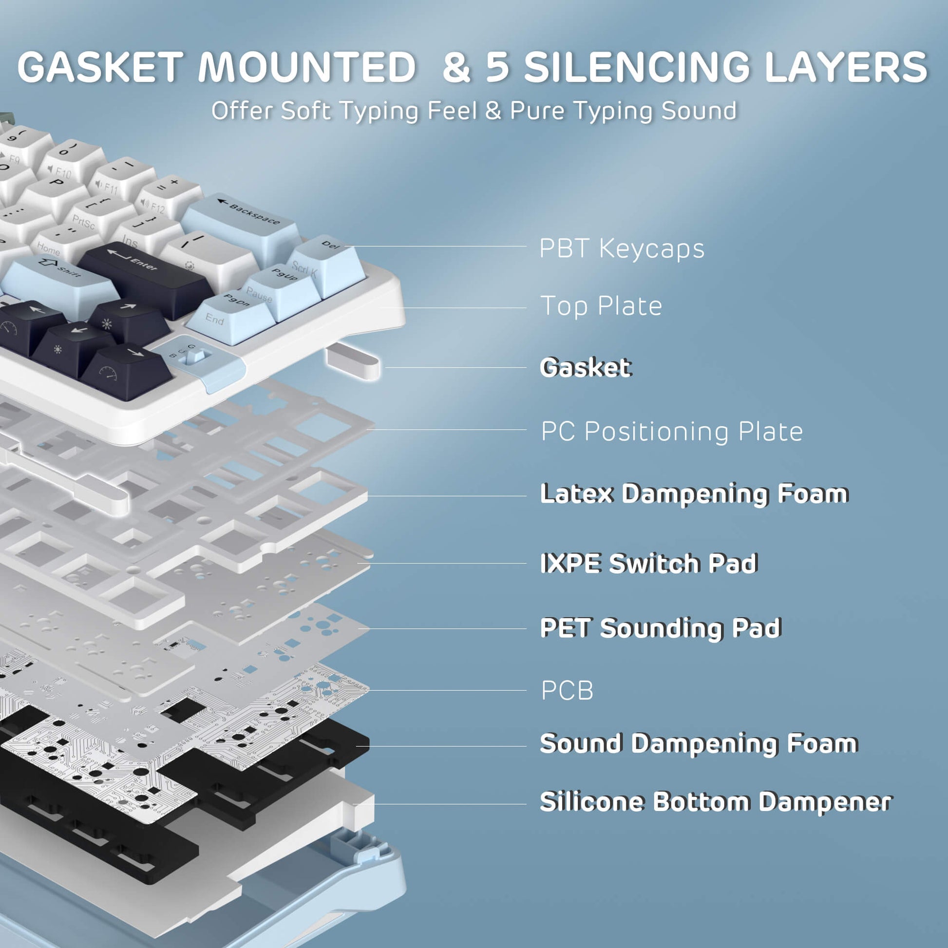 - Gasket-Mounted Typing Feel